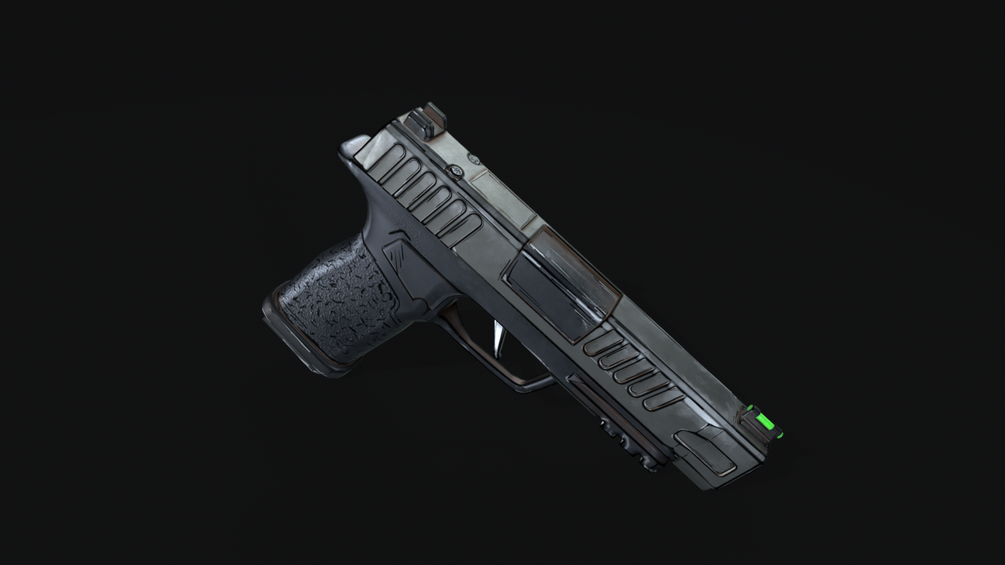 Stylized Modern Pistol - PBR Materials with Comic Book Outline in texture. Inspired by Sig Sauer P365,